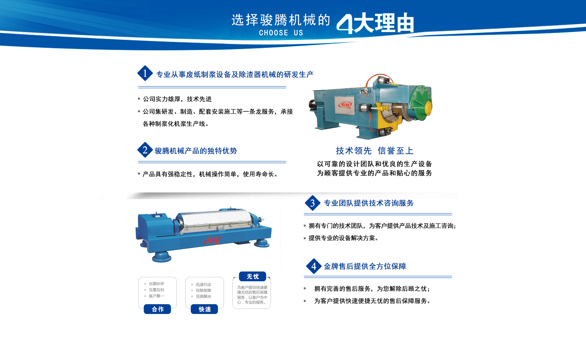安丘市駿騰機械制造有限公司位于中國風箏之都濰坊南35公里,座落在青云湖畔,是具有活力的安丘市興安街道工業(yè)園。 依托風箏之都完善的工業(yè)基礎(chǔ)和發(fā)達的機械制造業(yè),公司致力于廢紙制漿設(shè)備及除渣器機械的研究與制造。 公司始終堅持以市場需求為先導,客戶利益為目標,嚴格執(zhí)行國家技術(shù)及行業(yè)標準,保證產(chǎn)品品質(zhì),提供專業(yè)服務(wù),用專業(yè)的產(chǎn)品與真誠的客戶實現(xiàn)共同發(fā)展,是我們終生奮斗的目標。讓我們攜手共進,創(chuàng)造美好明天。 我們熱情期待著您的光臨指導,洽談業(yè)務(wù)! 查看更多>>
